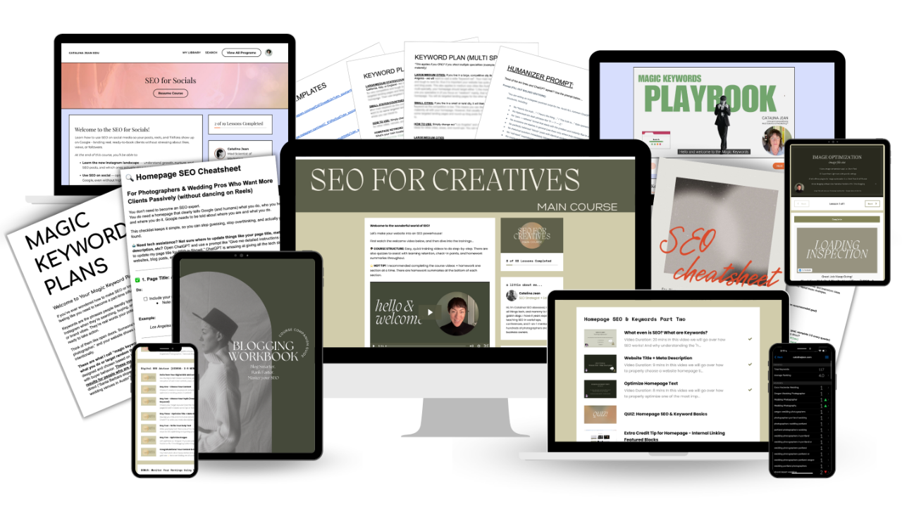 ā Includes 4 courses: SEO For Creatives, SEO for Socials, Magic Keywords Playbook & Essential SEO Starter Kit